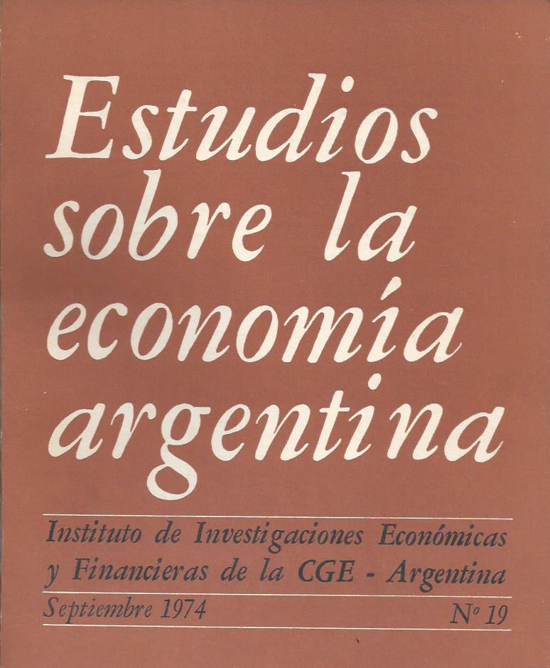 Editado por CGE. Buenos Aires: CGE, 1974. Revista del Instituto de Investigaciones Económicas y Financieras de la CGE. Septiembre 1974. N° 19. Director: Israel Dujovne.