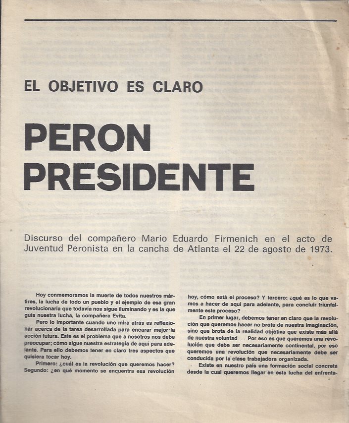 Firmenich, Mario E. El objetivo es claro: Perón Presidente.