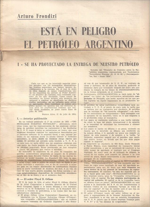 Frondizi, Arturo. Está en peligro el petróleo argentino.