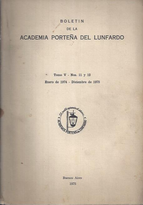Buenos Aires, 1975. en Boletín de la Academia Porteña del Lunfardo. Número 11 y 12. enero de 1974-diciembre de 1975.