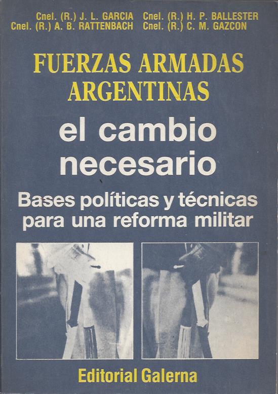 García, José L, Ballester, Horacio, Rattenbach, Augusto y Gazcón, Carlos. Fuerzas Armadas Argentinas el cambio necesario. Bases políticas y técnicas para una reforma militar.