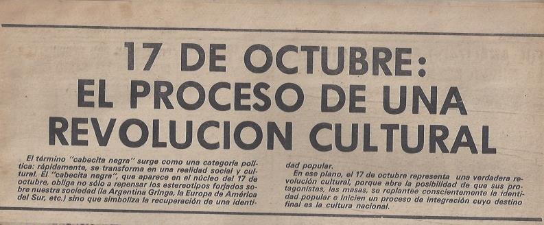 Gutierrez, Guillermo. 17 de octubre: el proceso de una revolución cultural.