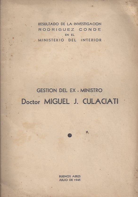 "Publico los resultados de la investigación Rodriguez Conde en el ministerio del interior, en lo que me es pertinente", por Miguel Culaciati. Extensión: 31 páginas.