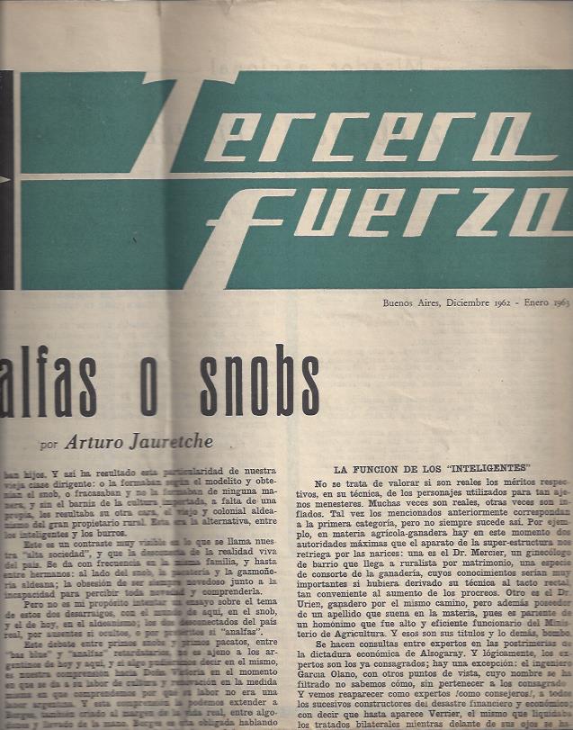 Buenos Aires: Tercera Fuerza, 1962. en Tercera Fuerza. Año I, N° V. Dic-1962.