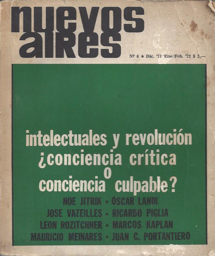 Buenos Aires, 1972. enRevista Nuevos Aires. N° 6. Intervienen Jitrik, Vazeilles, Rozitchner, Meinares, Landi, Piglia, Kaplan y Portantiero.