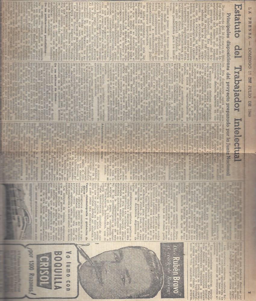 Buenos Aires, 1947. La Prensa. Domingo 17 de julio de 1949.