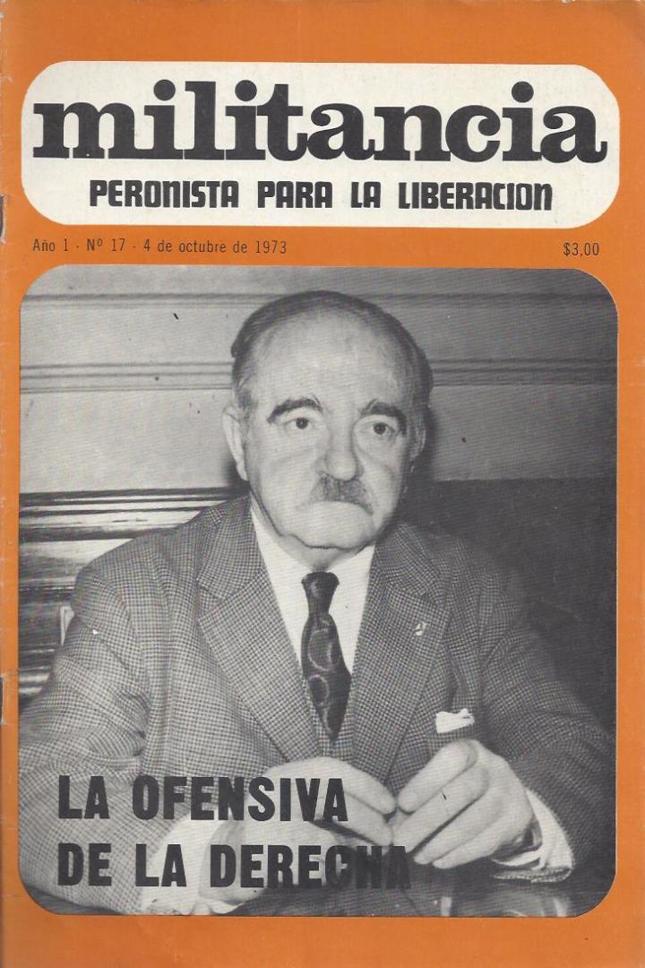 Editado por Militancia-Editorial. Buenos Aires: Militancia Peronista para la liberación, 1973. Revista Militancia peronista para la liberación N° 17- 4 de octubre de 1973
