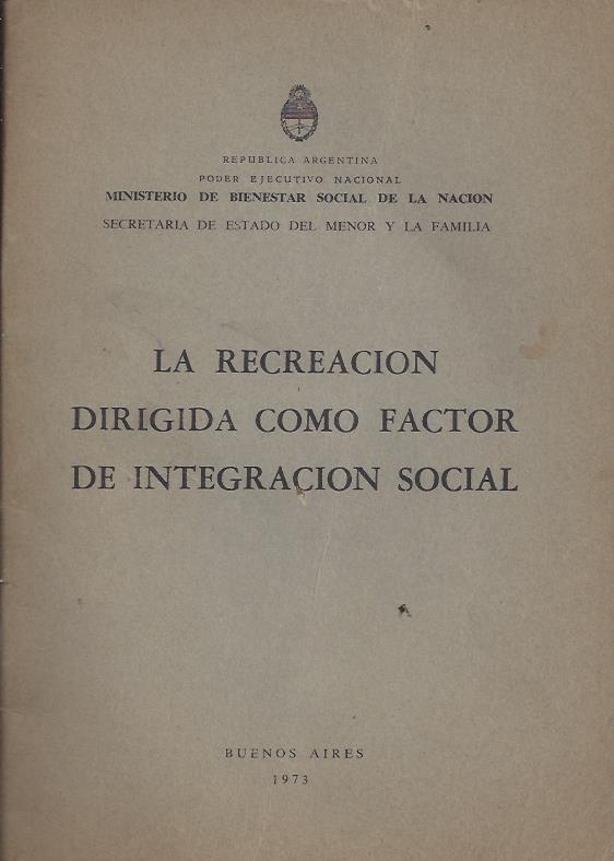 Editado por Ministerio de Bienestar Social de la Nación. Buenos Aires: Ministerio de Bienestar Social de la Nación, 1973.