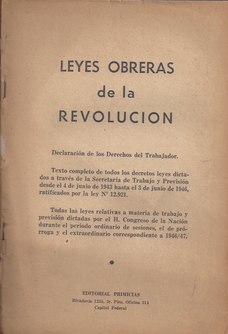 Editado por Secretaría de Trabajo y Previsión. Buenos Aires: Primicias, 1947.