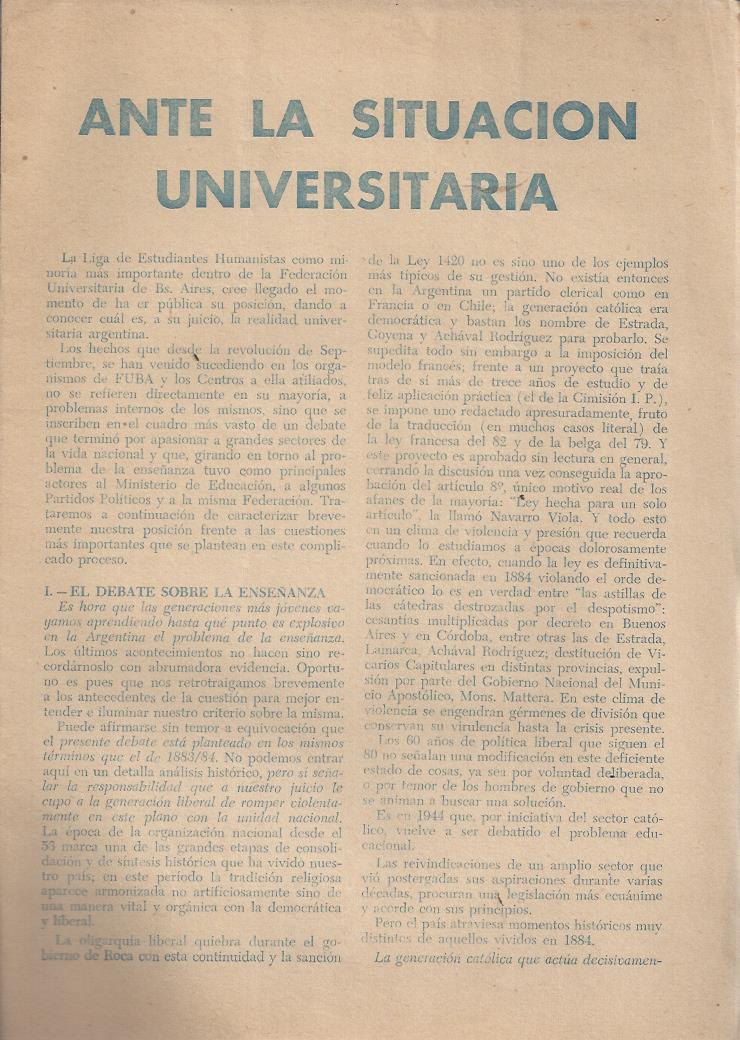 Liga Estudiantes Humanistas. Ante la situación universitaria.
