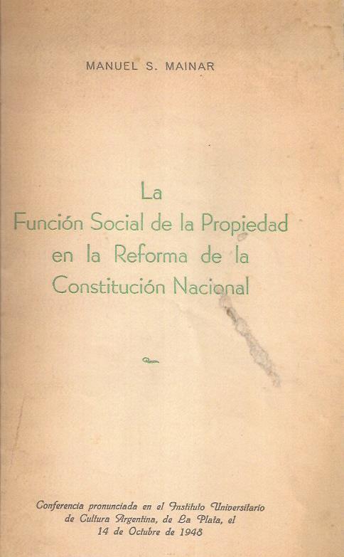 Mainar, Manuel. La función social de la propiedad en la reforma de la Constitución Nacional.