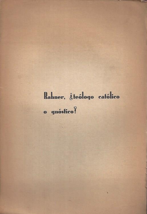 Meinvielle, Julio. Rahner, ¿teólogo católico o gnóstico?.