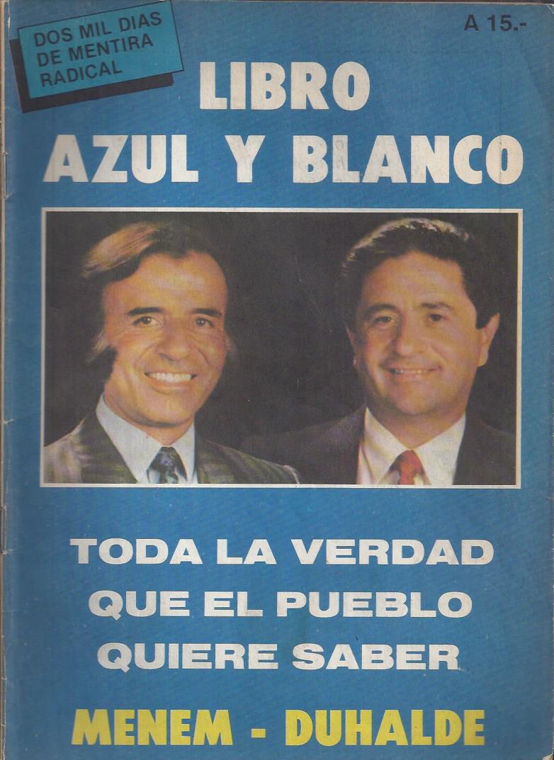 Menem, Carlos y Duhalde, Eduardo. Libro Azul y Blanco. Toda la verdad que el pueblo quiere saber.