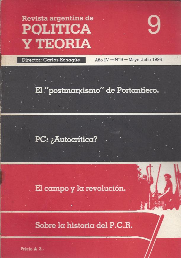 Buenos Aires: Ediciones Hoy, 1986. En REvista Argentina de Política y Teoría. Año IV. N° 9. Mayo julio 1986.