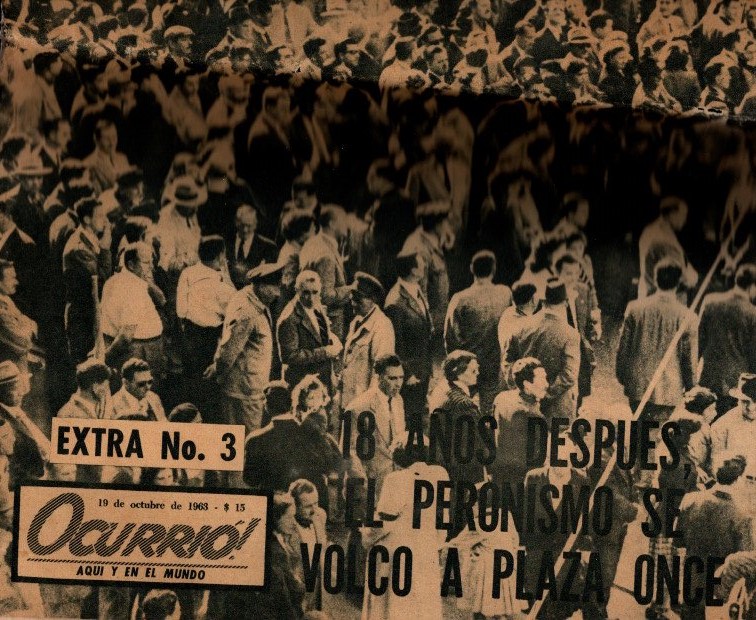Editado por Ocurrió aquí y en el mundo. Buenos Aires, 1963. Dedicado al acto del peronismo en Plaza Once por el 17 de octubre