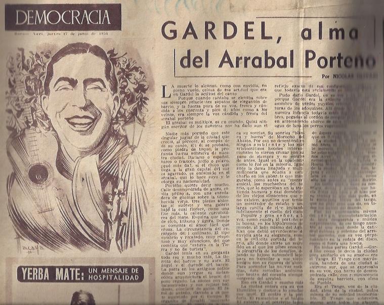 Olivari, Nicolás. Gardel, alma del arrabal porteño.