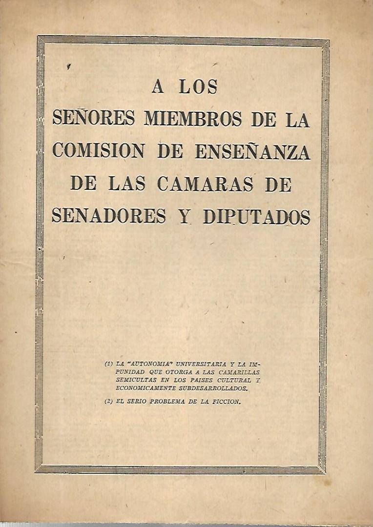 Pardo, Raymundo. A los señores miembros de la Comisión de Enseñanza de las Cámaras de Senadores y Diputados.