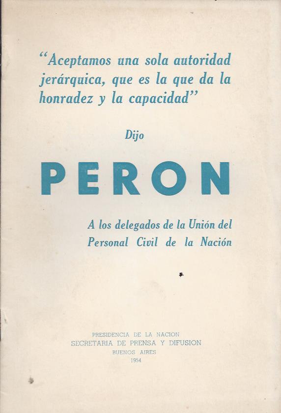 Perón, Juan D. Aceptamos una sola autoridad jerárquica, que es la que da la honradez y la capacidad dijo Perón a los delegados de UPCN.