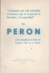 "El día 27 de julio de 1954 en el Salón de Actos de la Confederación General del Trabajo, el Presidente de la República, general Juan Perón, declaró inaugurada la Asamblea General Extraordinaria de Delegados convocada por la Unión del Personal Civil de la Nación. En tal oportunidad el Primer Mandatario pronunció las palabras que se transcriben a continuación":