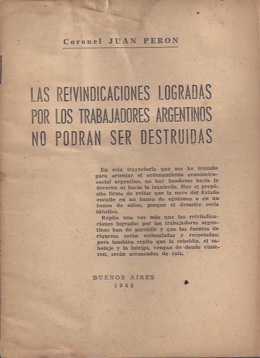 Perón, Juan D. Las reivindicaciones logradas por los trabajadores no podrán ser destruídas..