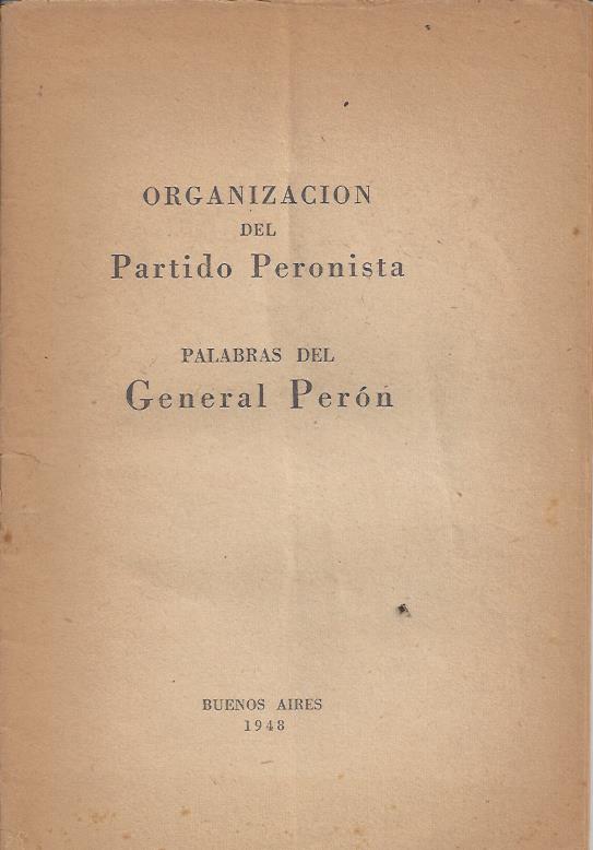 Perón, Juan D. Organización del Partido Peronista. Palabras del General Perón.