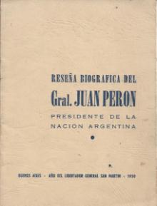 Perón, Juan D. Reseña biográfica del Gral.Juan Perón, Presidente de la Nación.