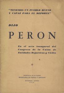 Perón, Juan D. "Tenemos un pueblo bueno y capaz para el deporte" dijo Perón..