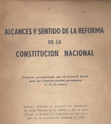 Perón, Juan D. Alcances y sentido de la reforma de la Constitución Nacional.