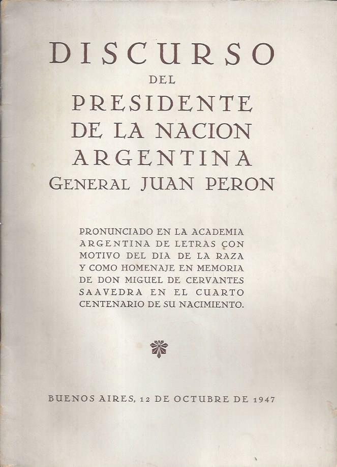 Perón, Juan D. Discurso del Presidente de la Nación Argentina General Juan Perón.