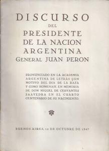 Buenos Aires: s d, 1947. Pronunciado en la Academia Argentina de letras con motivo del Día de la Raza y como homenaje en memoria de Don Miguel de Cervantes Saavedra en el cuarto centenario de su nacimiento
