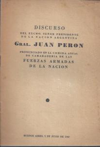 Perón, Juan D. Discurso del Presidente J.D.Perón en la comida anual de las Fuerzas Armadas de la Nación.