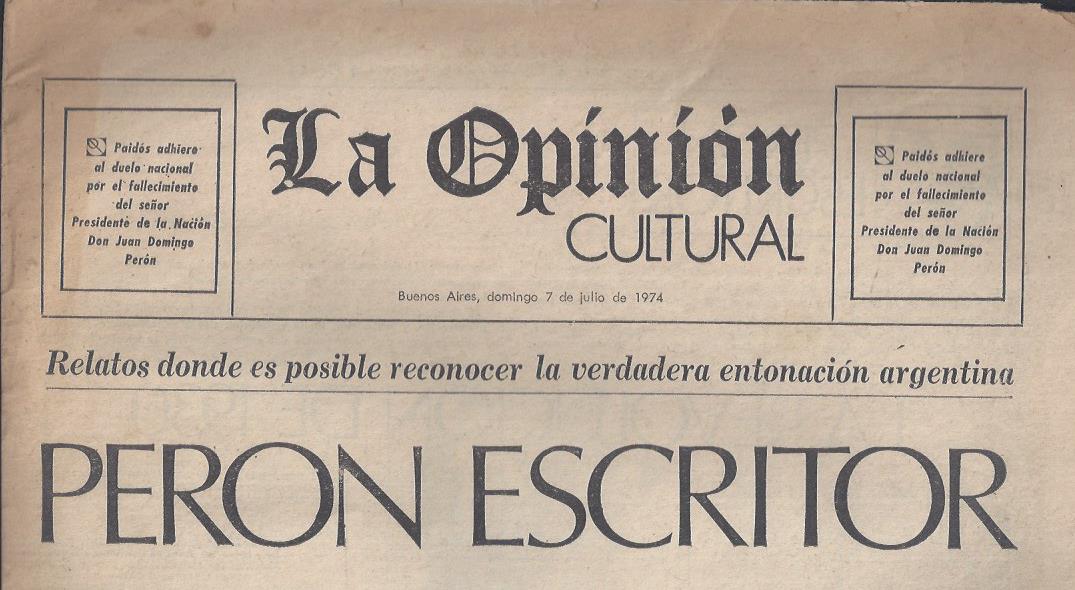 Buenos Aires, 1974. La Opinión cultural. 7 de julio de 1974.Incluye Lo que yo ví de la preparación y realización de la revolución del 6 de septiembe, Del poder al exilio y fragmentos de la entrevista que realizó Félix Luna en el año 1969