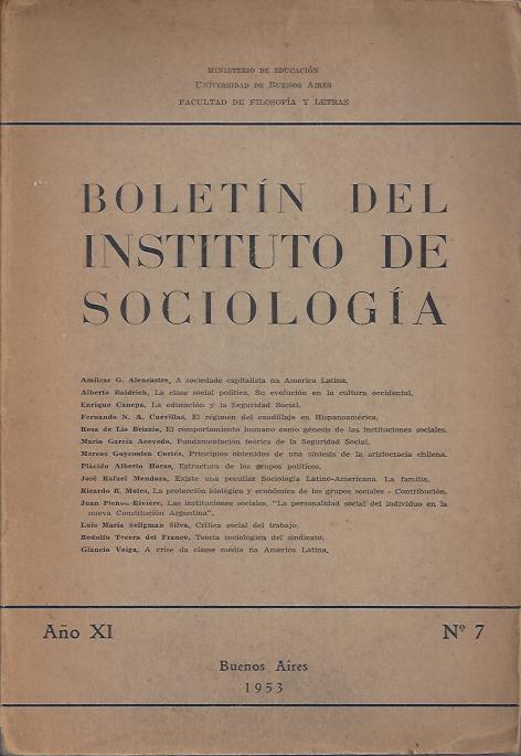 Buenos Aires: Fac.Filosofía y Letras U.B.A., 1953. en Boletín del Instituto de Sociología. N° 7.