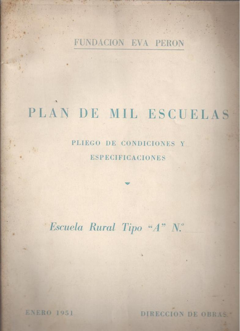 Editado por Fundación Eva Perón. Buenos Aires: Fundación Eva Perón, 1951. Escuela rural tipo "A"