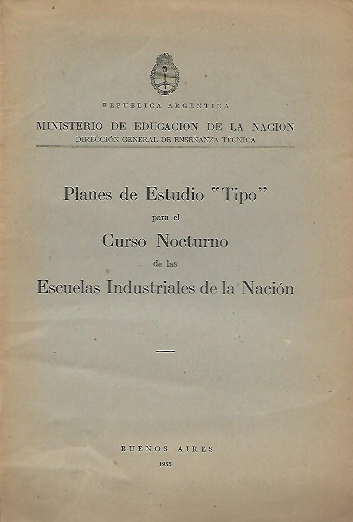 Planes de Estudio "Tipo" para el Curso Nocturno de las Escuelas Industriales de la Nación.