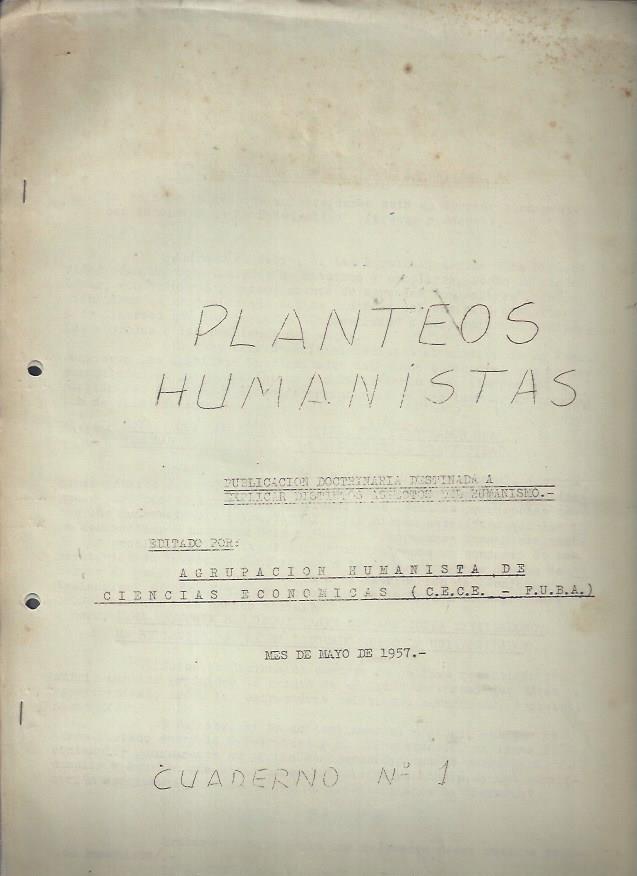Editado por Agrupación Humanista de Ciencias Económicas. Buenos Aires, 1957. Cuaderno Número 1. Publicación doctrinaria destinada a explicar distintos aspectos del humanismo