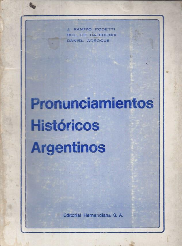 Podetti, Ramiro, Bill de Caledonia(seudónimo de J.D.Perón) y Adrogué, Daniel. Pronunciamientos históricos argentinos.