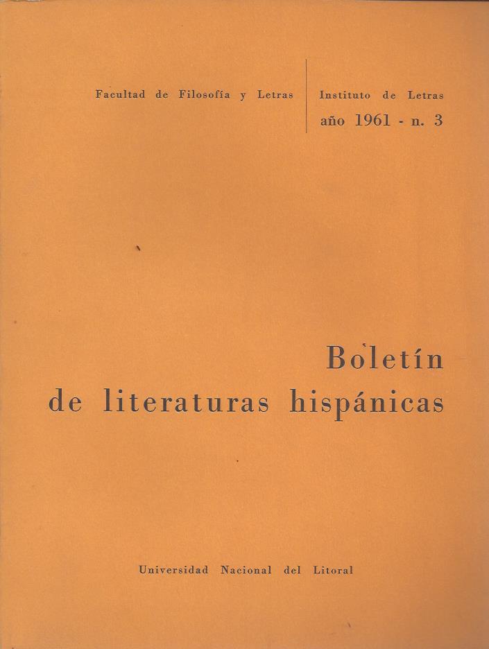 Paraná: Universidad del Litoral, 1961. en Boletín de literaturas hispánicas. N° 3