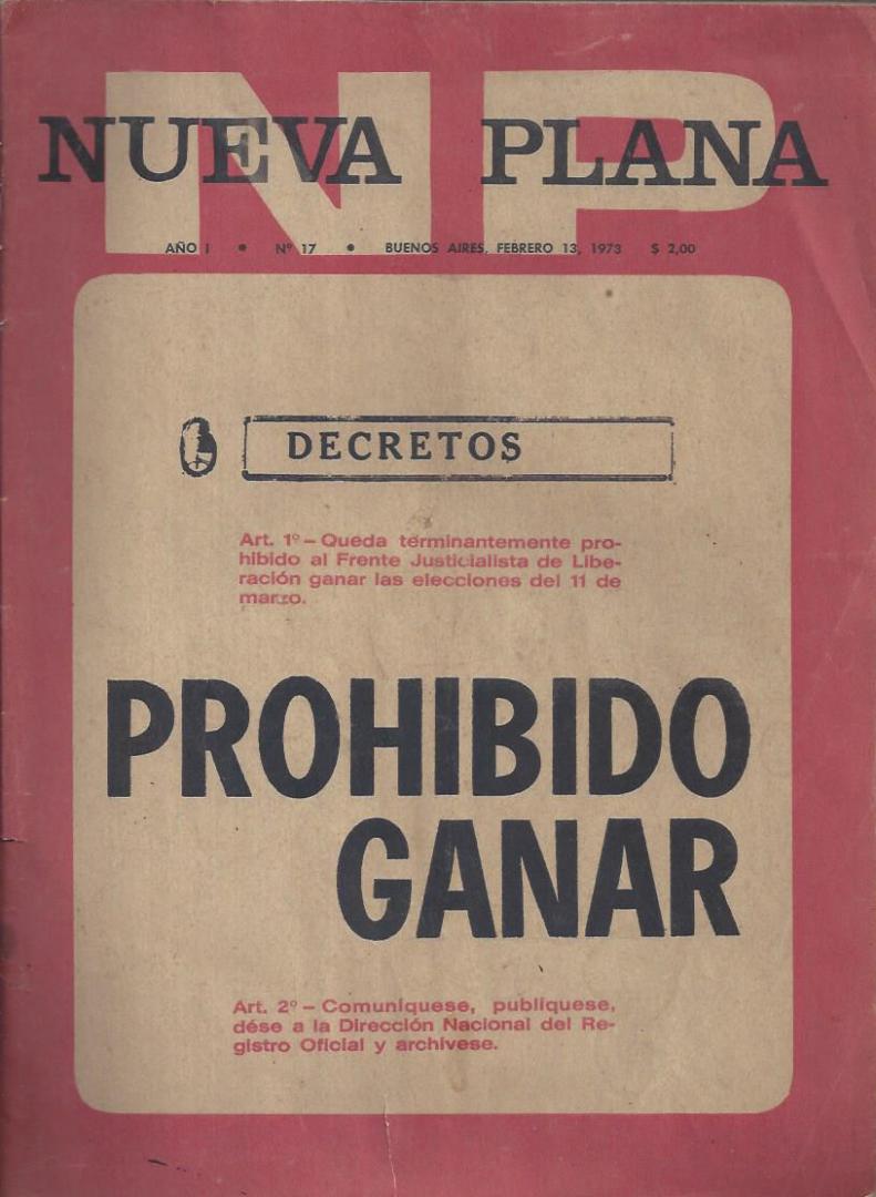 Editado por Nueva Plana. Buenos Aires, 1973. en Nueva Plana Número 17. febrero 1973. Sección política nacional.