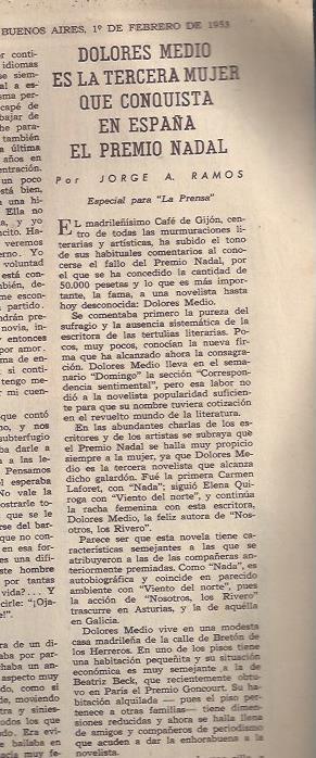 Ramos, Jorge A. Dolores Medio es la tercera mujer que conquista en España el premio nadal.