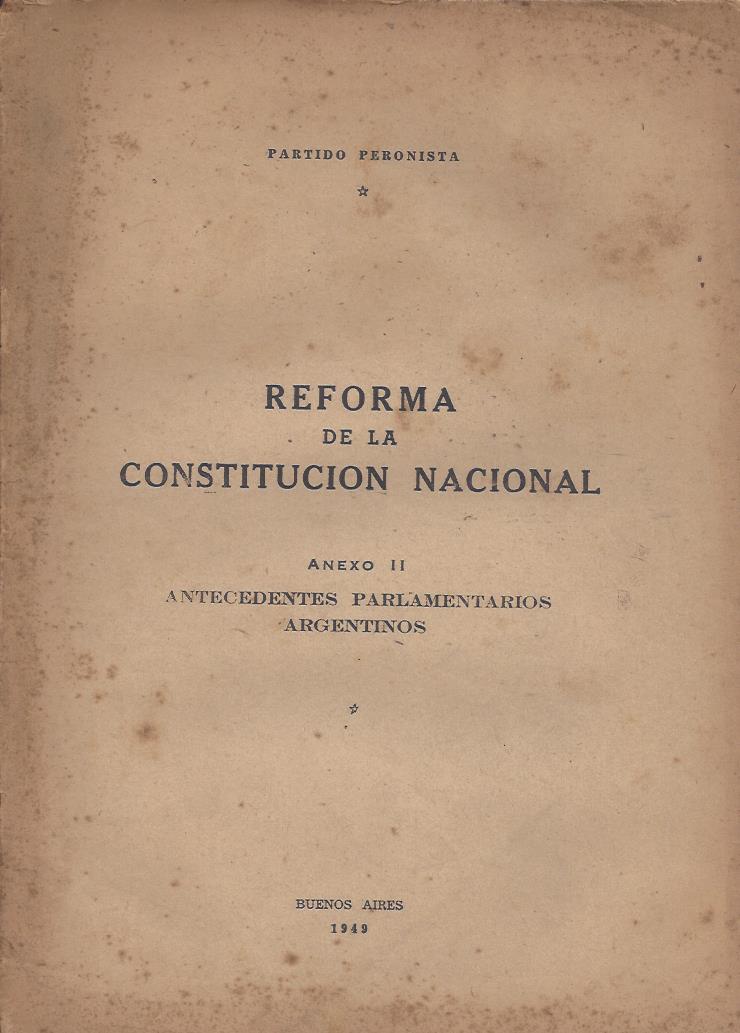 Editado por Partido peronista. Buenos Aires: sin datos, 1949. Anexo II. Antecedentes parlamentarios argentinos.