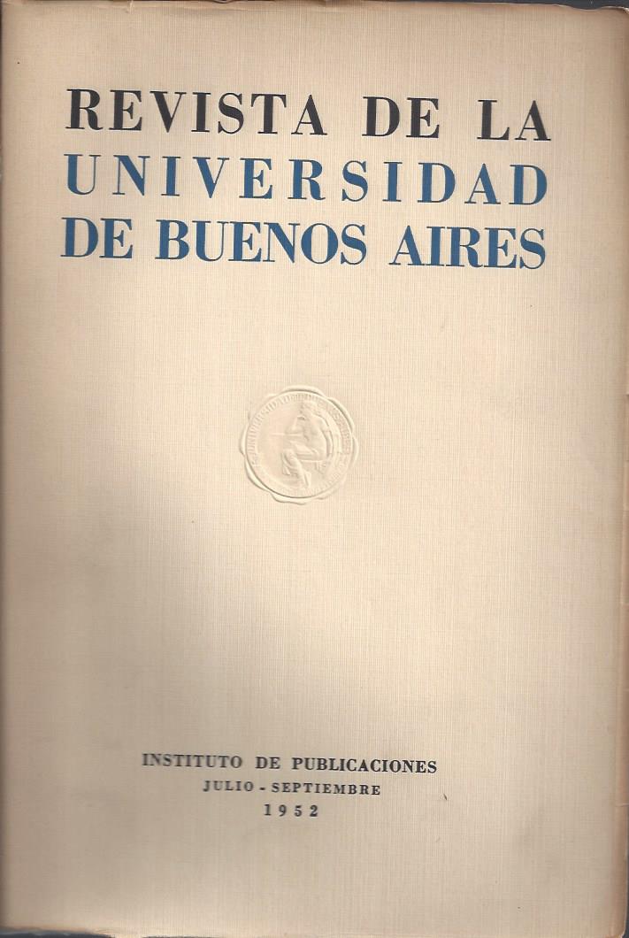 Buenos Aires, 1952. en Revista de la Universidad de Buenos Aires. N° 23. Julio - septiembre 1952.