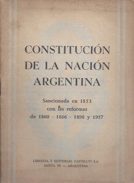 República Argentina. Constitución de la Nación Argentina. Sancionada en 1853 con las reformas de 1860, 1866, 1898 y 1957.