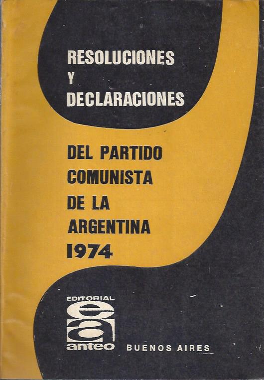 Resoluciones y declaraciones del Partido Comunista de la Argentina 1974.