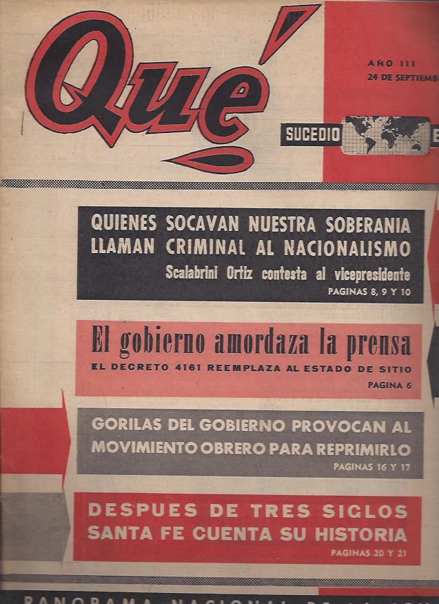 Buenos Aires: Qué, 1957. en Qué. N° 149. 24 de septiembre de 1957.