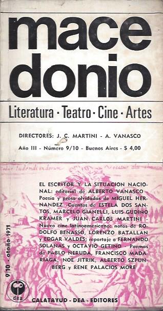 Buenos Aires, 1971. en Revista Macedonio. Literatura-Teatro-Cine-Artes. Número 9/10. Otoño 1971.