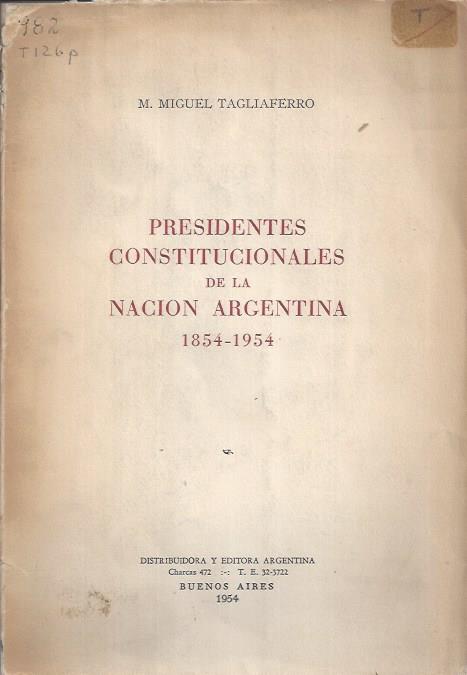 Sumarios cronológicos de los Presidentes Constitucionales de la Nación Argentina (1854-1954).