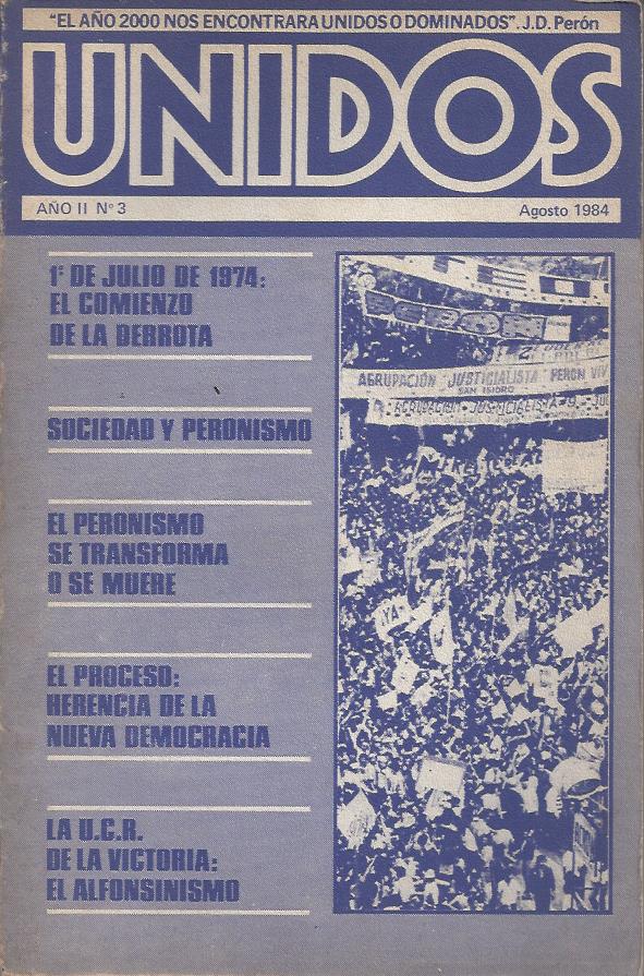 Buenos Aires: Unidos, 1983. en Revista Unidos N° 3. agosto 1984.