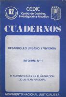 Desarrollo urbano y vivienda. Informe N° 1. Elementos para la elaboración de un plan nacional. Buenos Aires: Movimiento Nacional Justicialista-62 organizaciones, 1982.