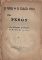 El pueblo no se equivoca nunca, dijo Perón a los dirigentes y delegados del Movimiento Peronista.. Buenos Aires: Subsecretaría de Informaciones de la Presidencia de la Nación, 1954.